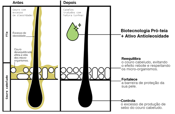 Cabelos oleosos requerem tratamento integral, que regula as funções do couro cabeludo, controlando o sebo por mais tempo, sem ressecar os fios ou efeito rebote. Pensando nisso, Natura Lumina apresenta seu novo tratamento para cabelos oleosos. O Novo Sistema de Tratamento para Cabelos Oleosos atua com eficácia no sintoma e na causa da oleosidade, tratando tanto o fio quanto o couro cabeludo.O couro cabeludo tem papel fundamental na saúde do cabelo. Quando suas funções sofrem alterações e são desreguladas por fatores externos, como excesso de poluição e sujeira, ou internos, como variação hormonal e stress, diversos problemas podem ser originados - entre eles, a oleosidade, que gera um aspecto de sujo ou pesado nas mechas, principalmente na raiz. Outro fator responsável pelo sebo é a genética, já que algumas pessoas possuem metabolismo com maior tendência à produção de oleosidade.Para o tratamento do fio, com a exclusiva Biotecnologia Pró-teia os produtos preenchem o fio de dentro para fora, dos microporos do córtex à cutícula, na medida exata de cada dano, sem pesar. O resultado é um tratamento de precisão. Já o Ativo Antioleosidade atua no sintoma (tirando a sensação de cabelo pesado e o aspecto de cabelo sujo) e na causa do problema, regulando as funções do couro cabeludo, reduzindo a produção do sebo e fortalecendo seu equilíbrio, aumentando assim sua resistência aos fatores externos e internos.